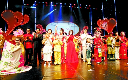 11月25日晚7時(shí)30分,《梨園飛歌·少林功》大型文藝演出以少林武功十八般武藝的精彩展示拉開首場演出序幕;由我省豫劇三團(tuán)青年表演藝術(shù)家張春玲與臺灣豫劇團(tuán)青年表演藝術(shù)家蕭揚(yáng)玲聯(lián)袂出演《抬花轎》,展現(xiàn)出豫臺兩地豫劇名家的交融與風(fēng)采;《梨園春》小擂主牛欣欣以精彩的豫劇清唱和邊歌邊舞的高山族歌曲演唱,讓現(xiàn)場的觀眾興奮不已;最后,由我省著名豫劇表演藝術(shù)家李金枝、賈文龍共同演唱戲歌《好個(gè)大中原》,大氣磅礴的唱詞、悅耳流暢的旋律,加上電視屏幕上對河南歷史文化的影像展示,把當(dāng)晚演出氣氛推向了高潮。