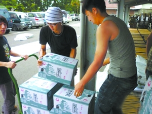 8月15日,實踐支隊到達高雄,當地有關部門正在緊急調度大量人力物力救災。在參加完上午的交流活動之后,郝瀚和齊興達利用下午有限的自由活動時間,前往當地救災物資調配中心,與在場的70余名臺灣志工一起搬運救災物資。物資調配中心的工作緊張而有序,所有志工排成一排,救災物資從一個人手中傳遞到另一個人手中。郝瀚和齊興達還分別向募捐處捐了款。
