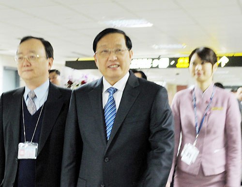 遼寧省省長陳政高率領代表團于2月15日23時抵達臺北桃園機場。東北新聞網 馬哲 攝