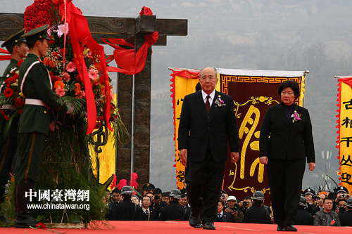中國臺灣網(wǎng)4月5日西安消息 辛卯年清明公祭軒轅黃帝典禮5日上午在陜西省黃陵縣橋山祭祀大院隆重舉行。中國國民黨榮譽主席吳伯雄和夫人戴美玉應邀參加,并敬獻花籃。(記者 李典典)