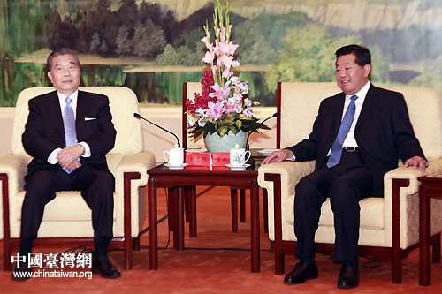 7日下午,中共中央政治局常委、全國政協主席賈慶林在人民大會堂福建廳會見來京參加第十四屆京臺科技論壇的臺灣工商界代表。(中國臺灣網 陳佳慧 攝)