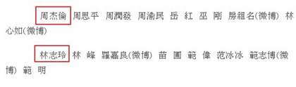 委員會列出的演員名單中出現了周杰倫、林志玲等臺灣明星。圖片來源臺灣媒體