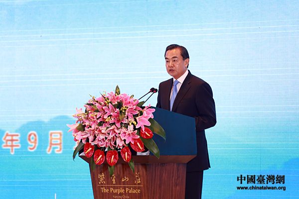 中共中央臺辦、國務院臺辦主任王毅在19日舉行的海峽兩岸企業家紫金山峰會開幕式上致辭(中國臺灣網 王偉 攝)