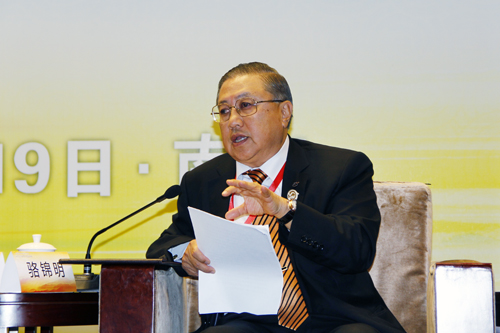 臺灣工商協進會理事長、臺灣工業銀行董事長駱錦明在兩岸金融合作專題論壇上進行主題發言。(中國臺灣網 于斯文 攝)