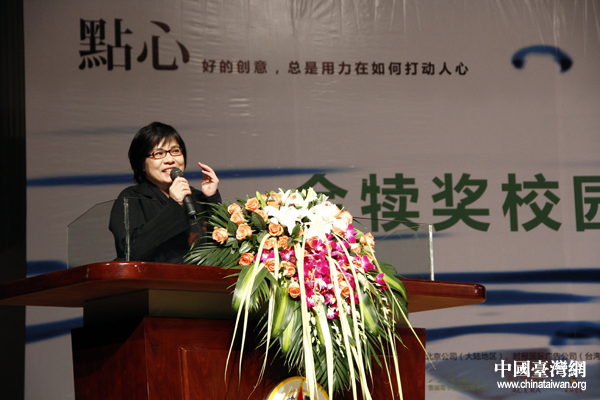 3月20日下午,由旺旺中時媒體集團主辦的第22屆時報金犢獎在中國傳媒大學舉行首場巡講會,旺旺中時文化傳媒(北京)有限公司總經理林淑黛作為主辦單位代表發表致辭。(中國臺灣網 張潔 攝)