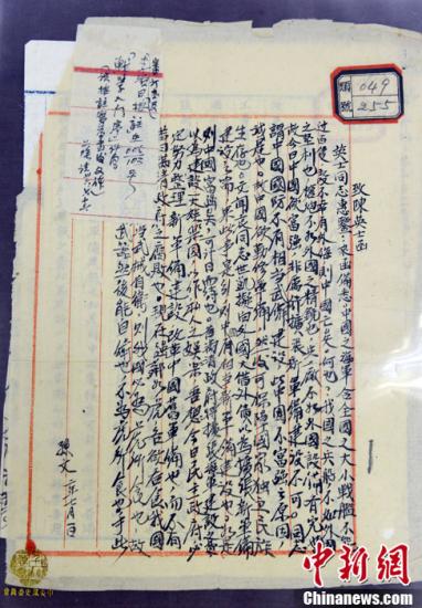 8月27日上午,中國國民黨黨史館在臺北舉辦喬遷暨揭幕儀式,國民黨主席馬英九出席并為黨史館揭幕。中國國民黨黨史館這次搬遷是歷史上第七度搬遷,對外公開超過300萬件以上珍貴史料。圖為1913年孫中山寫給陳英士信的原件。中新社發(fā) 劉震 攝