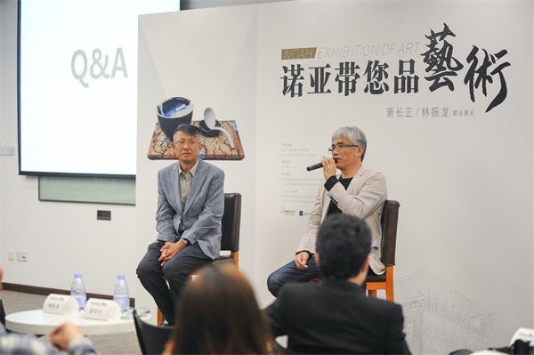 林振龍(左)、蕭長正(右)兩位藝術(shù)家在現(xiàn)場舉辦了交流會(huì)。