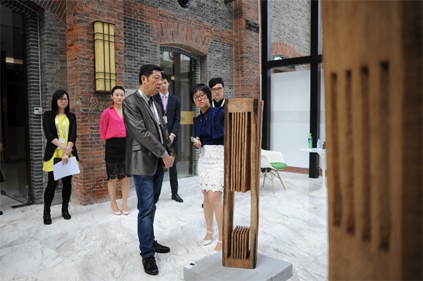 5月9日下午,諾亞財(cái)富文創(chuàng)展正式開幕。黃浦江畔的諾亞財(cái)富總部和歌斐資產(chǎn)的百年老建筑里,將分別展出了中國臺(tái)灣藝術(shù)家蕭長正和林振龍的藝術(shù)作品。帶有濃厚中國風(fēng)格的木雕和陶瓷展品與黃浦碼頭和改建后仍保持著老廠房古樸風(fēng)格的建筑體相映成輝。