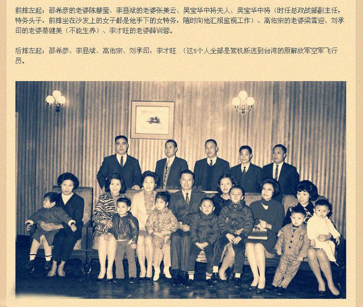 住在新北忠義山莊的“反共義士”只剩100多人,他們?nèi)缃窈苌僭偬帷绊n戰(zhàn)”、“自由日”,只是抽煙、喝酒和看電視打發(fā)日子,“反共”色彩和圖騰在臺(tái)灣逐漸褪去。島內(nèi)輿論認(rèn)為,在兩岸交往逐漸密切的今天,“反共義士”已由一個(gè)象征榮耀、英雄的名詞,變成一個(gè)尷尬說法,稱得上是“歷史的嘲諷”。圖為叛臺(tái)部分解放軍叛徒與妻子合影。