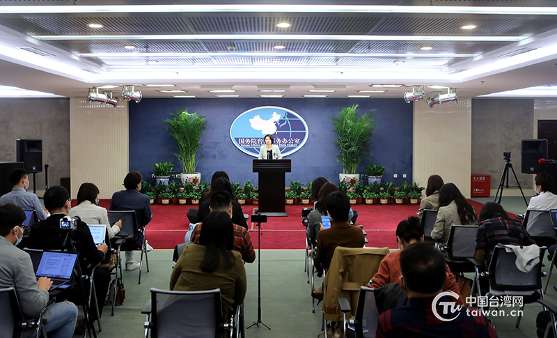國臺辦發言人朱鳳蓮回答記者提問。(中國臺灣網 普燕 攝)