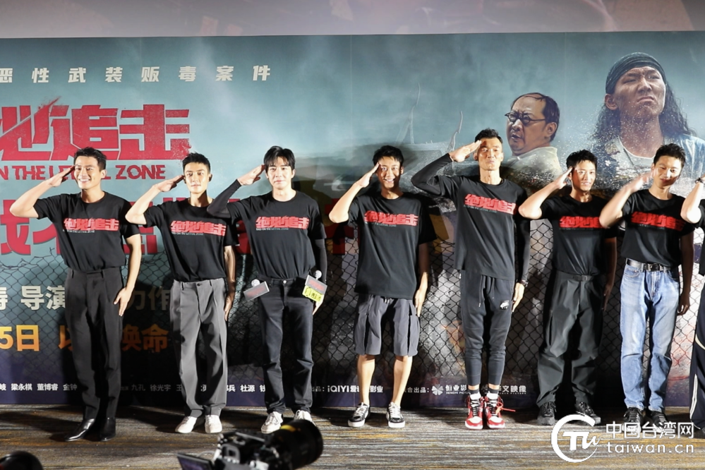 圖為電影《絕地追擊》中飾演8077部隊戰士的主演們。(中國臺灣網 郁誠 攝)