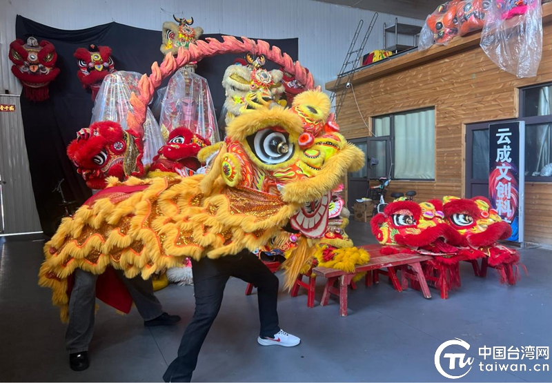 在劉家堡王吳村,臺灣青年體驗舞獅。(中國臺灣網(wǎng)發(fā))