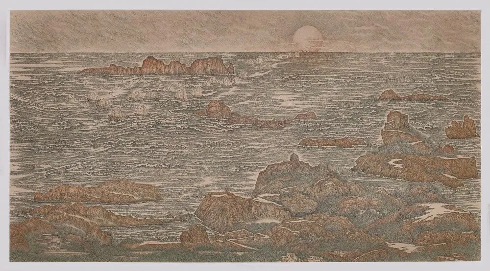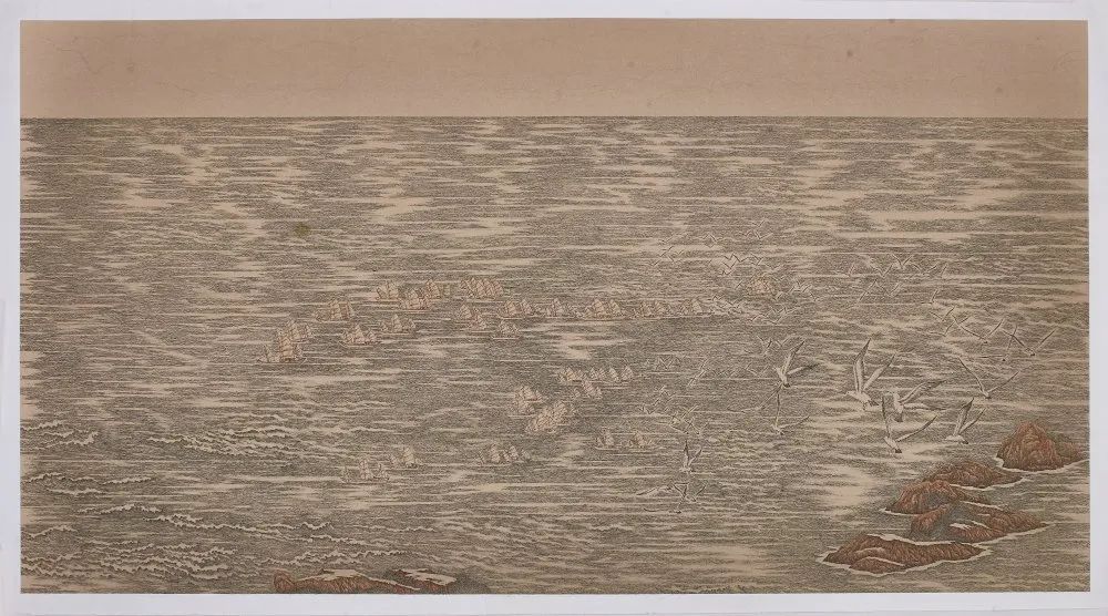 巧的是,浙江洞頭與臺灣一水相連,地緣相近、人緣相親、語言相通、文緣相承,此次,以侯傳芳、金國斌、吳聘真、葉向榮、呂相國等藝術(shù)家組成的創(chuàng)作團隊,繼完成《八百里甌江圖》之后,于2020年啟始,歷時一年半余,用獨特的鋼筆畫技法,以甌江入海口的半屏山為開篇,順江入海,延綿海峽,直至高雄半屏山,創(chuàng)作了《兩岸半屏山》山海長卷,展現(xiàn)了兩岸半屏山山水相連、人文相通的歷史淵源。《兩岸半屏山》長卷由12幅高1米、長2米的畫卷組成,總長24米。