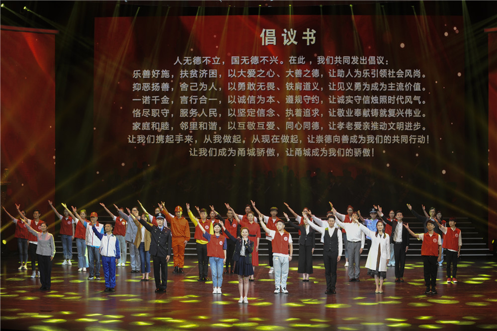 第六屆寧波市道德模范頒獎典禮現(xiàn)場發(fā)布“最美”倡議書。圖片來源:寧波文明網(wǎng)
