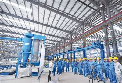 黨員志愿者走進浙江省湖州市棟梁新材有限公司車間,在企業員工休息時為他們宣講紅色革命故事。