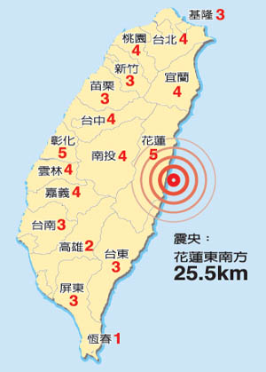 全臺各地震度 來源:臺灣《聯(lián)合報》