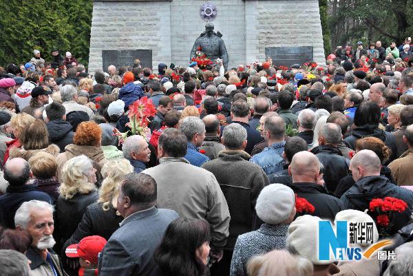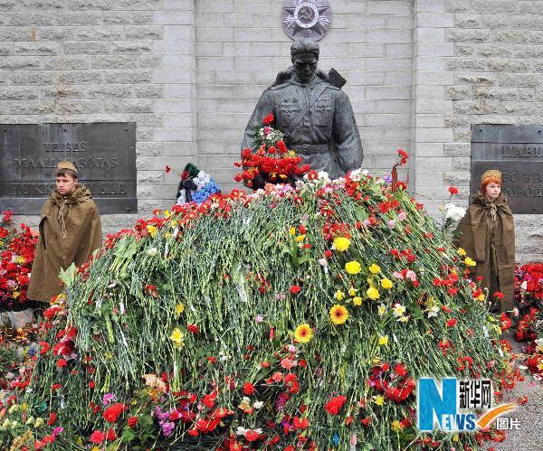 5月9日,在愛沙尼亞首都塔林,蘇軍解放塔林紀(jì)念碑前堆滿了獻(xiàn)花。當(dāng)天,愛沙尼亞舉行各種活動,慶祝世界反法西斯戰(zhàn)爭勝利65周年。新華社發(fā)(維克托攝)