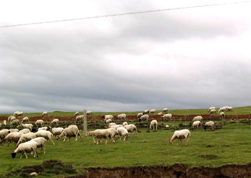 這里很美,美得足以讓你震顫;這里很高,高得讓你感覺藍天和白云伸手可及;這里是一片碧草如茵的大草原。草原的天,藍得醉人;草原的云,白得可心;草原的山,美得如畫,就連草原的空氣也甜得讓人心怡。浮云般的羊群,棕黑相間的牦牛,星星點點地徜徉在青草和野花叢中。不時有穿著藏服的藏民,騎著駿馬悠然地在草原上緩緩而來。遠處,山巒起伏,偶有雄鷹飛過的身影,蓮花般的蒙古包散落在白云深處。