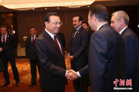 12月14日晚,中國(guó)國(guó)務(wù)院總理李克強(qiáng)在河南鄭州為來(lái)華出席上海合作組織成員國(guó)政府首腦(總理)理事會(huì)第十四次會(huì)議的各國(guó)領(lǐng)導(dǎo)人舉行歡迎宴會(huì)。宴會(huì)前,李克強(qiáng)同與會(huì)各國(guó)領(lǐng)導(dǎo)人共同參觀河南省與上合組織成員國(guó)合作成果展,詳細(xì)聽(tīng)取河南省負(fù)責(zé)人介紹有關(guān)情況,并同各國(guó)領(lǐng)導(dǎo)人進(jìn)行了親切交流。 中新社記者 劉震 攝