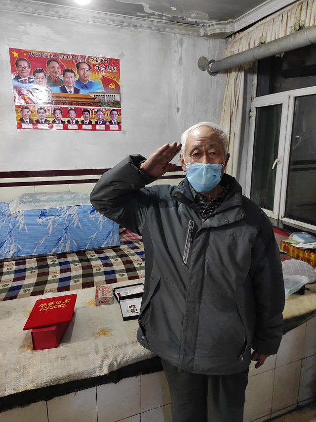 高治邦老人出生于1933年,參加過1949年解放綏遠“九一九”起義。1950年,朝鮮戰爭爆發后,作為志愿軍第二十三兵團手術隊護士班班長奔赴朝鮮戰場。至今,老人懷里還揣著一枚抗美援朝參戰紀念章。1956年,高治邦在河北軍區大禮堂被授予少尉軍銜,1957年轉業到河南平頂山煤礦醫院工作,1962年回到新營子鎮缸房窯村。