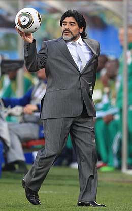 馬拉多納非常少見地身穿正裝出席比賽。熟悉馬拉多納的人知道,這位狂放不羈的足球天才更喜歡身穿運(yùn)動(dòng)服。但是,時(shí)間飛逝,馬拉多納已經(jīng)接受了新的角色——阿根廷國家隊(duì)的主教練。馬拉多納以這樣一種從未有過的方式向全世界宣告:世界杯,馬拉多納回來了!