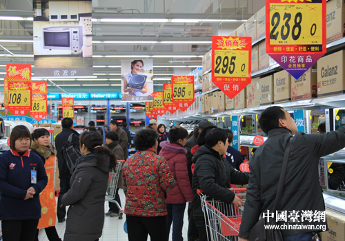 開業當天,大潤發開展各類優惠活動(圖片來愈:阜陽市臺辦)
