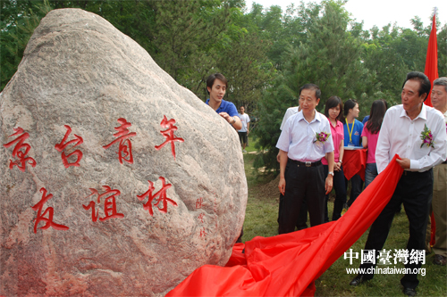 7月17日上午,“京臺青年友誼林”揭幕儀式在北京奧林匹克公園舉行,海協(xié)會會長陳云林為友誼林紀(jì)念石碑揭幕。(中國臺灣網(wǎng) 劉瑩 攝)