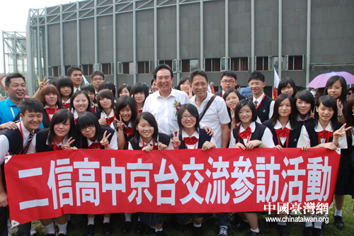 海協(xié)會會長陳云林和臺灣師生共同為“京臺青年友誼林”植下了象征兩岸友誼地久天長的松樹。(中國臺灣網(wǎng) 于斯文 攝)
