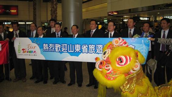 4月7日19:00 山航SC 4085航班平穩(wěn)地降落在臺(tái)北桃園國(guó)際機(jī)場(chǎng),當(dāng)于沖局長(zhǎng)、孫述濤市長(zhǎng)等走出飛機(jī)艙口時(shí),受到臺(tái)灣觀光協(xié)會(huì)張學(xué)勞會(huì)長(zhǎng)、臺(tái)灣兩岸觀光協(xié)會(huì)謝謂君副會(huì)長(zhǎng)等的熱烈歡迎。臺(tái)灣邀請(qǐng)單位在機(jī)場(chǎng)舉行歡迎儀式,歡迎山東省旅游交流團(tuán)等團(tuán)組來臺(tái)交流考察。