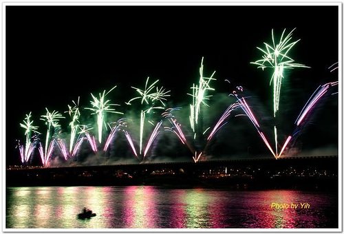 今年臺北花火節選在七夕前的星期六晚上施放,原先是不知道的,當天下午5點多看電視時無意中看到,心想怎么能錯過這個好機會,自從買了DSRL 也一年了,卻一直沒拍過煙火,于是立即捉了相機腳架往三重河岸奔去 。