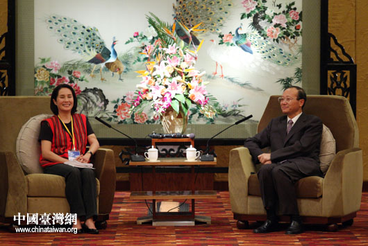 8月20日下午,國(guó)家旅游局局長(zhǎng)、海峽兩岸旅游交流協(xié)會(huì)會(huì)長(zhǎng)邵琪偉會(huì)見臺(tái)灣少數(shù)民族代表團(tuán)團(tuán)長(zhǎng)高金素梅一行。(中國(guó)臺(tái)灣網(wǎng) 鐘寶華 攝)