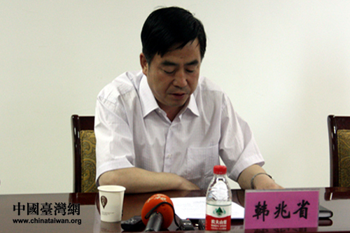 酒泉市能源局副局長韓兆省向兩岸媒體記者詳細介紹了酒泉市新能源發展的現狀以及未來規劃。(中國臺灣網 郜利敏 攝)