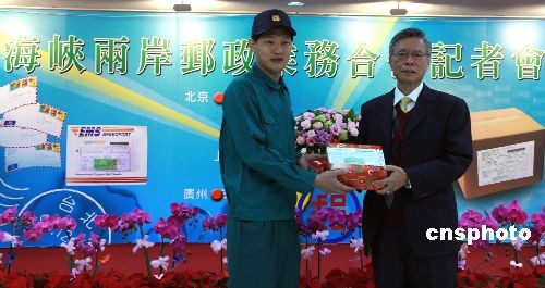 隨后,臺灣郵政協會顧問鄧添來給海峽兩岸郵政交流協會顧問馬軍勝寄出第二封快捷郵件。“這是我本人寄出的一小件,卻是兩岸郵政業務的一大件。”鄧添來說。