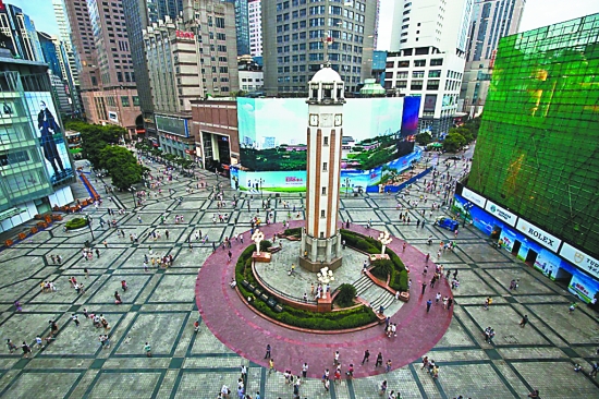 建造于1945年的人民解放紀念碑標志著抵抗日本侵略者之戰的結束。1950年,重慶對解放碑進行了翻新,直到上世紀80年代,它一直是當地最高的建筑。如今,在高樓大廈的映襯下,解放碑顯得越發“嬌小”了。