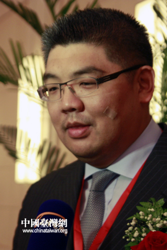 7月7日,中國國民黨榮譽(yù)主席連戰(zhàn)的長子連勝文在第四屆津臺(tái)投資合作洽談會(huì)項(xiàng)目簽約儀式現(xiàn)場接受媒體采訪。(中國臺(tái)灣網(wǎng) 馬迪 攝)