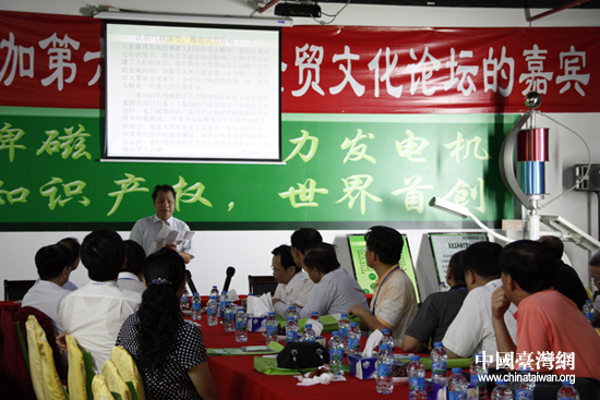 參會(huì)代表在研發(fā)出世界第一臺(tái)磁懸風(fēng)力發(fā)電機(jī)的深圳泰瑪風(fēng)光能源科技有限公司參訪座談(中國(guó)臺(tái)灣網(wǎng) 李徽 攝)