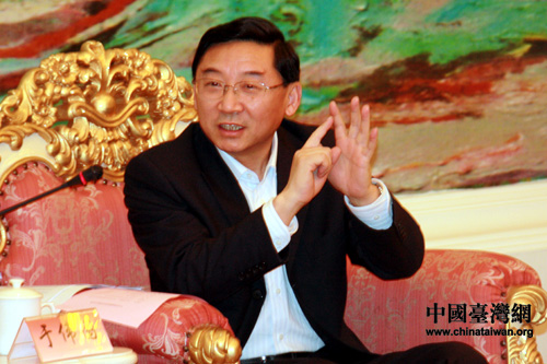 福建省委常委、廈門市委書記于偉國介紹說廈門新區建成后,廈門城市格局由原來集中于島內一個“拳頭”,伸展成為一個“手掌”,手心是大海,五指是廈門島和海滄、集美、同安、翔安四個組團。(中國臺灣網 董潔 攝)