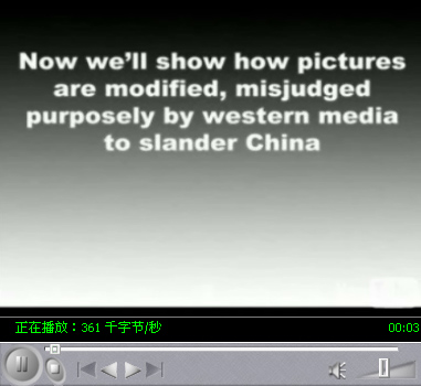 這段視頻在開篇就指出:“所有的西方媒體都‘興奮異!娜蟮侥切┧^的‘真相’,現在我們就向大家展示一下,那些照片是怎樣的被西方媒體修改之后去詆毀中國的”。視頻中涉及的西方媒體包括德國的N-TV,圖片報(Bild Zeitung),RTL電視臺,美國的華盛頓郵報,這幾家媒體涉嫌將尼泊爾警察毆打示威者的圖片偷梁換柱的說成是中國警察在拉薩所為;而柏林早郵報(Berliner Mogenpost),BBC等媒體,則被批評將中國警方的"營救"照片描述成"拘捕";美國的CNN是刻意刪去了右側向行進中的軍車投擲石頭的人群的畫面,掐頭去尾給人以軍車肆虐拉薩街頭的政府暴力印象;德國的明鏡周刊也被指責使用錯誤的文字標題對圖片給予歪曲的暗示。
