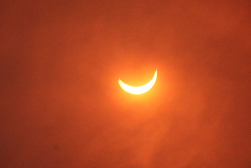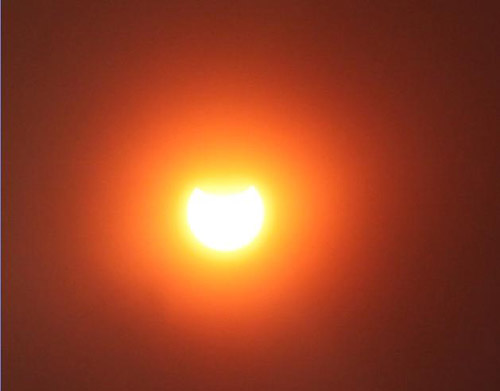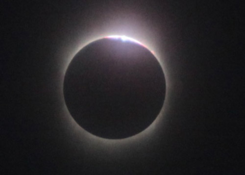 天空越來越暗,主持人停止了講解,只有忽然而過的風與楊柳上的知了時不時的碰撞出“吱嗚”的聲音,在場的人們拿起自己手中的望遠鏡、相機用力的透過鏡頭看著空中。漸漸的,天空亮出一圈淡淡的光環,接著凸出一顆、兩顆的小光點!翱,那是貝利珠”有人激動的喊著。天空光明大作,太陽再次慢慢的展現出它的全貌,全場歡呼不絕于耳。