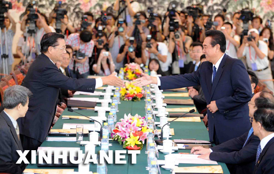6月12日上午9時(shí)許,海峽兩岸關(guān)系協(xié)會(huì)會(huì)長(zhǎng)陳云林與海峽交流基金會(huì)董事長(zhǎng)江丙坤會(huì)談在北京釣魚臺(tái)國(guó)賓館開始舉行。新華社記者李曉果攝