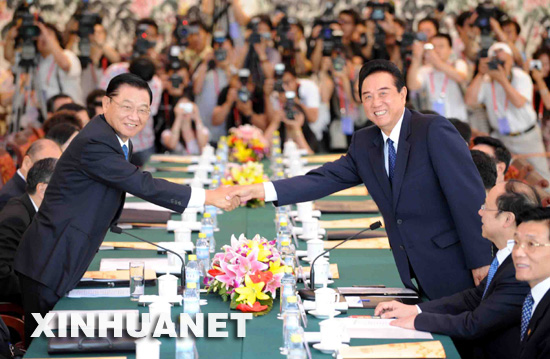 新華網(wǎng)快訊:海峽兩岸關(guān)系協(xié)會(huì)會(huì)長(zhǎng)陳云林與海峽交流基金會(huì)董事長(zhǎng)江丙坤會(huì)談12日上午9時(shí)許在釣魚臺(tái)國(guó)賓館開始舉行。這是時(shí)隔9年多后兩會(huì)領(lǐng)導(dǎo)人再度對(duì)話。
