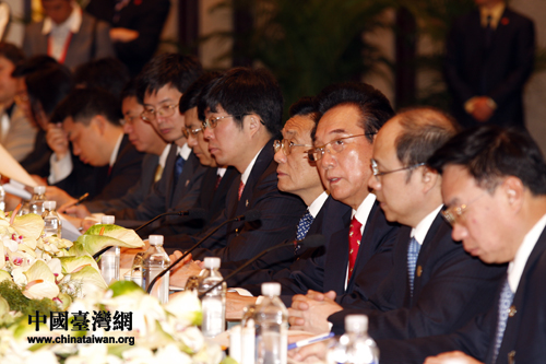 陳云林進(jìn)一步指出,為了謀求兩岸經(jīng)濟(jì)在互利雙贏格局下,更快更好地發(fā)展,為了兩岸共同攜手抵御金融風(fēng)暴沖擊,本次經(jīng)過(guò)雙方協(xié)商,擬定了兩岸空中定期航班、兩岸金融合作、兩岸共同打擊犯罪及司法互助等三項(xiàng)議題進(jìn)一步協(xié)商,希望在互惠互利的基礎(chǔ)上,會(huì)談能達(dá)成一致的意見(jiàn)并簽署協(xié)議;同時(shí)就陸資赴臺(tái)投資事宜充分交換意見(jiàn),形成共識(shí),對(duì)外公布。他相信在大家共同努力下,本次會(huì)談應(yīng)該也一定會(huì)取得完滿的成果。