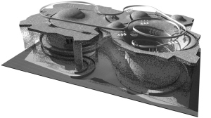 瑞士館的外圍是巨大的帷幕,參觀者可以從帷幕的任何一處進(jìn)入館內(nèi)一層的城市區(qū)。帷幕的每一部分都能獨(dú)立產(chǎn)生和儲(chǔ)存能量,并以LED燈的形式將其利用。帷幕可以與展館周圍的能量,如太陽能或者照相機(jī)閃光燈產(chǎn)生的光能發(fā)生反應(yīng),從而發(fā)出閃光。