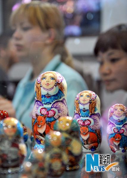 5月2日,俄羅斯傳統工藝品套娃受到游客的追捧。新華社記者王定昶攝