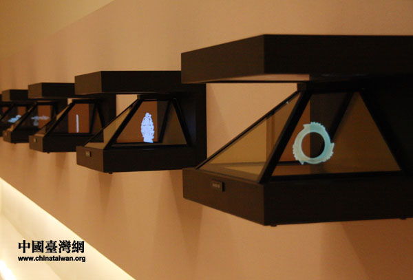震旦館內(nèi),以全息影像展示各種傳統(tǒng)玉器。(中國(guó)臺(tái)灣網(wǎng) 鐘寶華 攝)