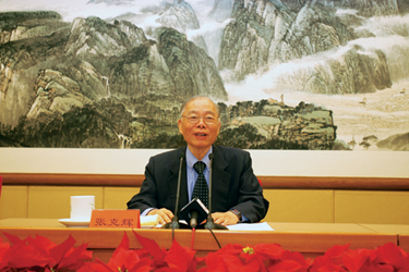 圖1:全國政協(xié)副主席、中國和平統(tǒng)一促進(jìn)會(huì)fu會(huì)長張克輝在座談會(huì)上海講話。
