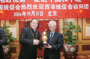 2004年11月23日,應(yīng)中國(guó)和平統(tǒng)一促進(jìn)會(huì)邀請(qǐng),右尼日利亞、加納、多哥、塞拉利昂、塞內(nèi)加爾、利比里亞6國(guó)華僑華人組成的西非中國(guó)和平統(tǒng)一促進(jìn)會(huì)訪問(wèn)團(tuán)到北京訪問(wèn)。