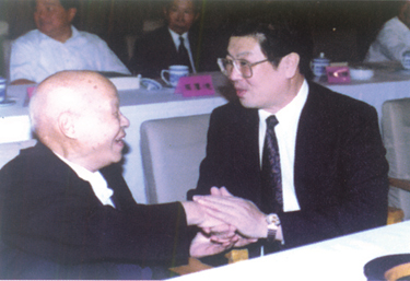 圖2全國政協(xié)副主席、中央統(tǒng)戰(zhàn)部部長王兆國9右)親切慰問孫越崎會(huì)長。