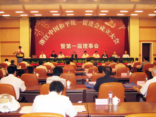 會(huì)議審議通過了《浙江中國和平統(tǒng)一促進(jìn)會(huì)章程》,選舉了第一屆理事會(huì)會(huì)長(zhǎng)、執(zhí)行副會(huì)長(zhǎng)、副會(huì)長(zhǎng)、秘書長(zhǎng)、常務(wù)理事等。中共浙江省委副書記夏寶龍當(dāng)選為第一屆理事會(huì)會(huì)長(zhǎng)。各民主黨派省委會(huì)和省工商聯(lián)的負(fù)責(zé)人等出席大會(huì)。