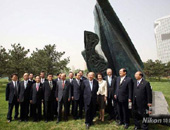 吳伯雄一行參觀臺灣藝術(shù)家的雕塑作品]]>